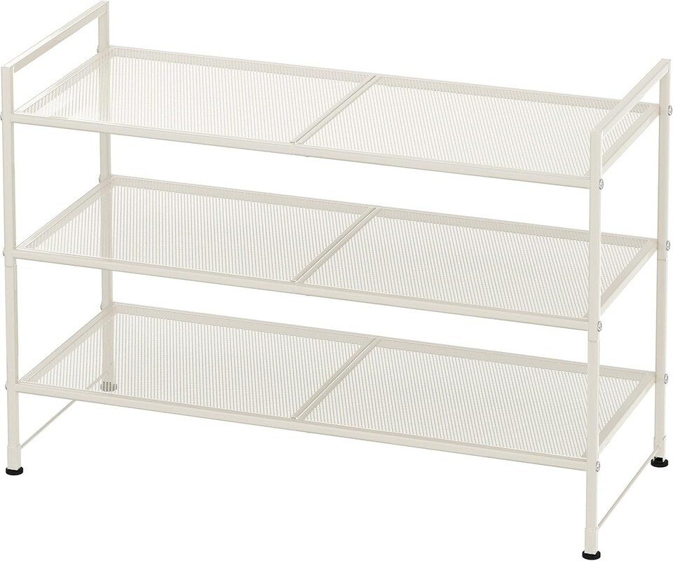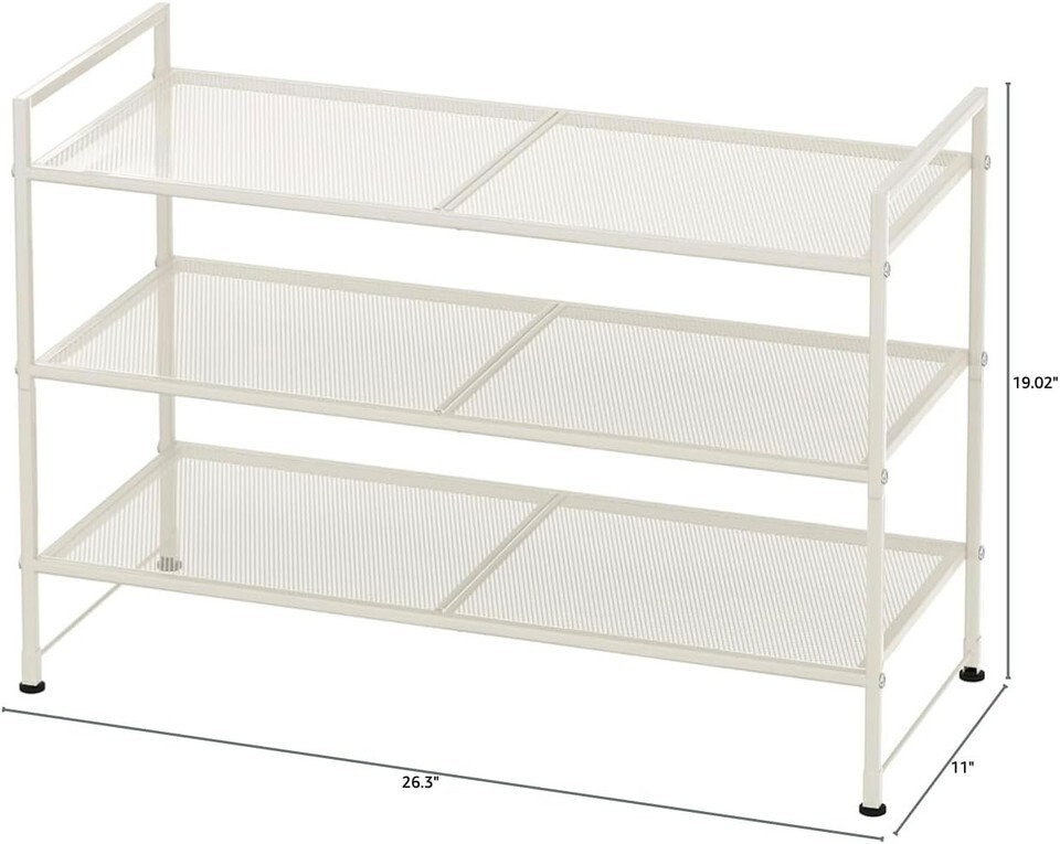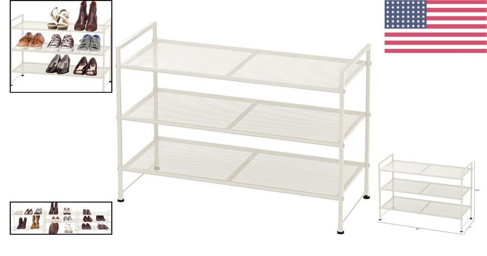 - Elegant 3-Tier Stackable Mesh Shoe Rack in White - Maximize Entryway Space