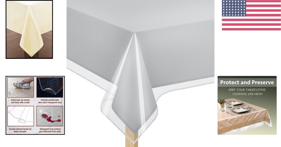Deluxe Clear Vinyl: This tablecloth protector is designed to showcase your beautiful stainproof tablecloths and fine linens while preventing any stains or damage.