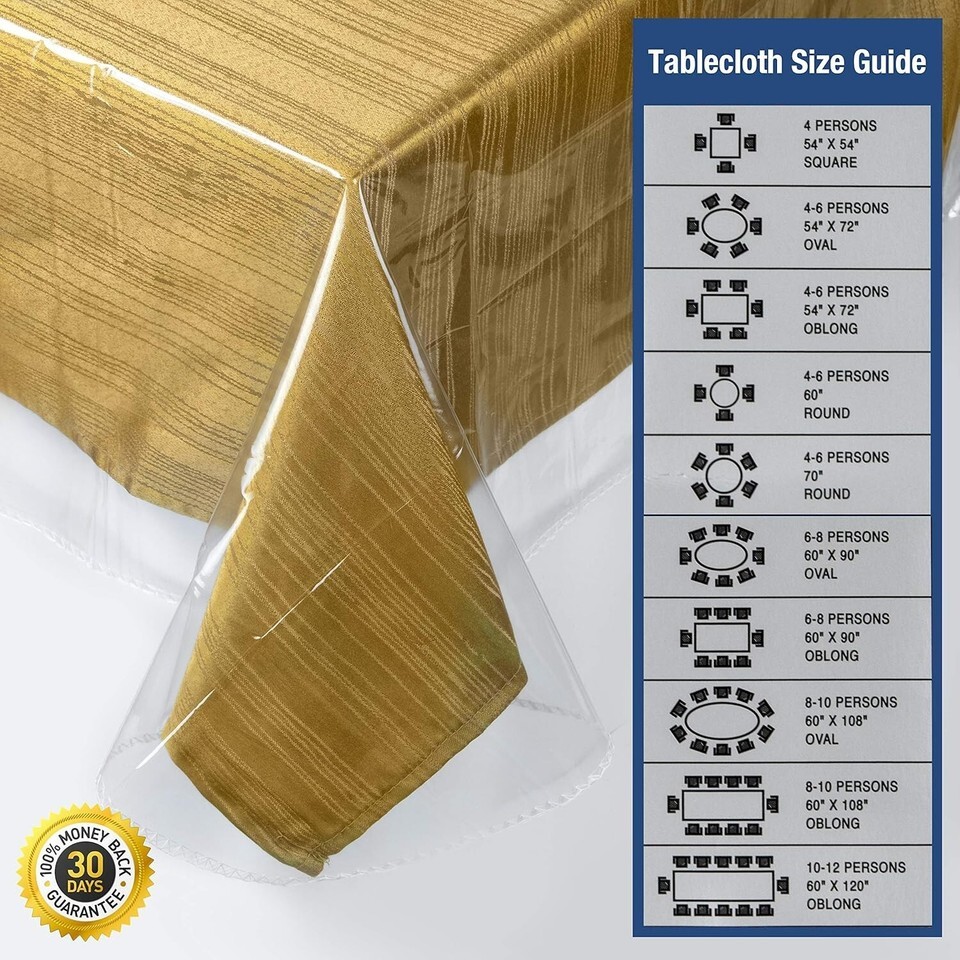 Heavy Duty Plastic: Made from crystal clear vinyl, our cover allows the elegance of your tablecloth to shine through while providing robust protection against spills, stains, and wear.
