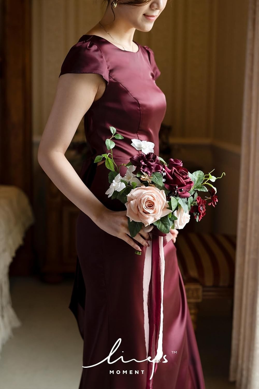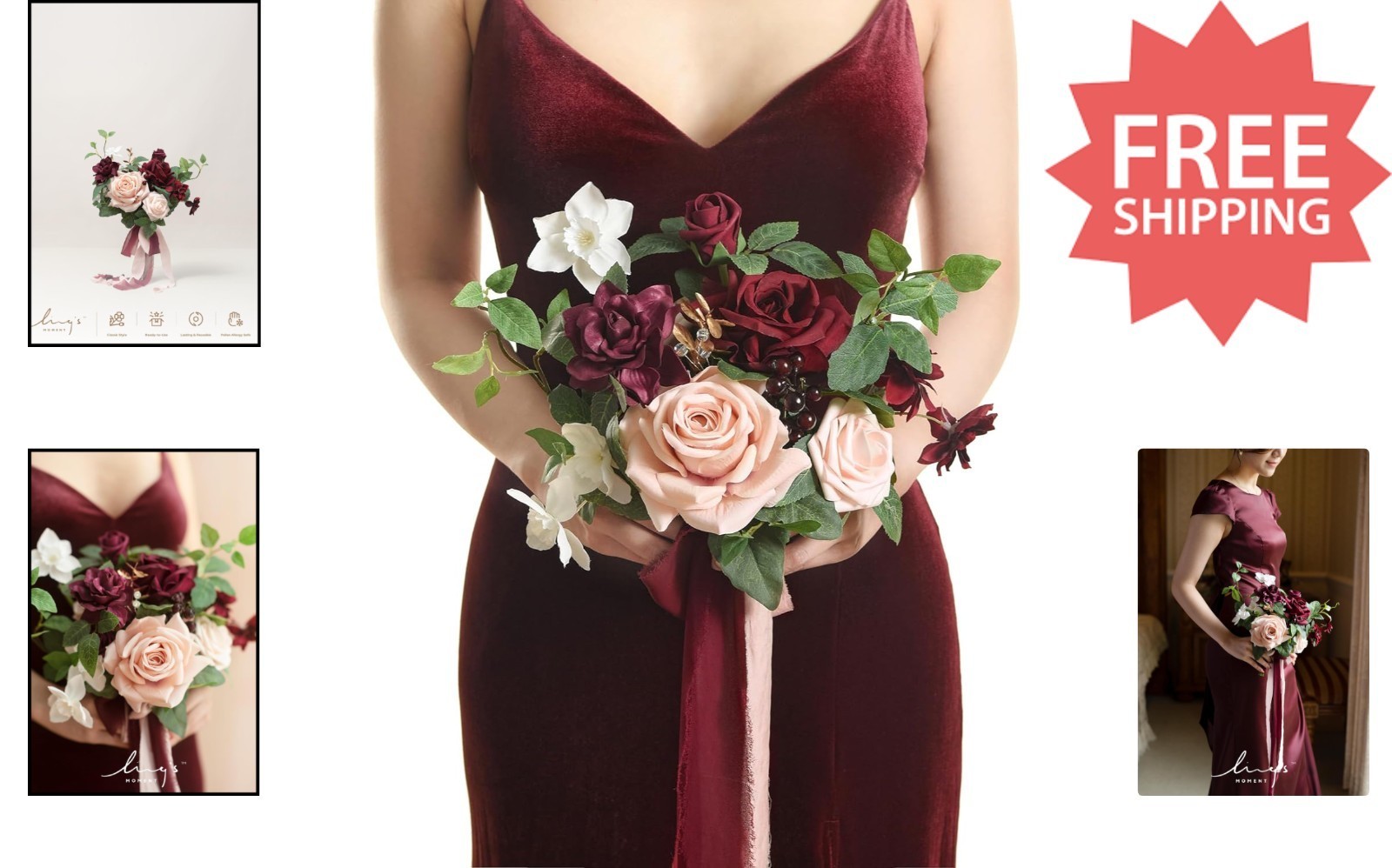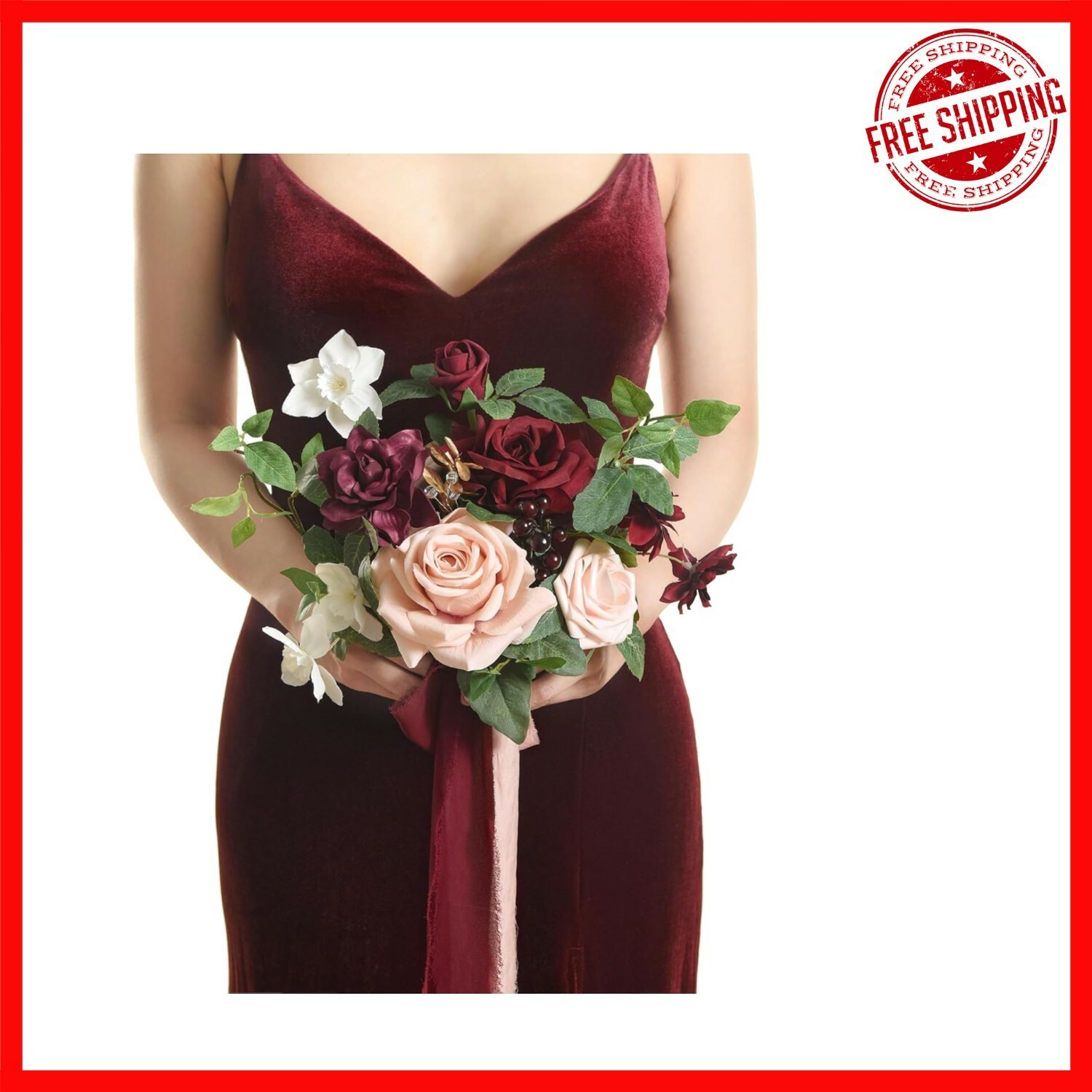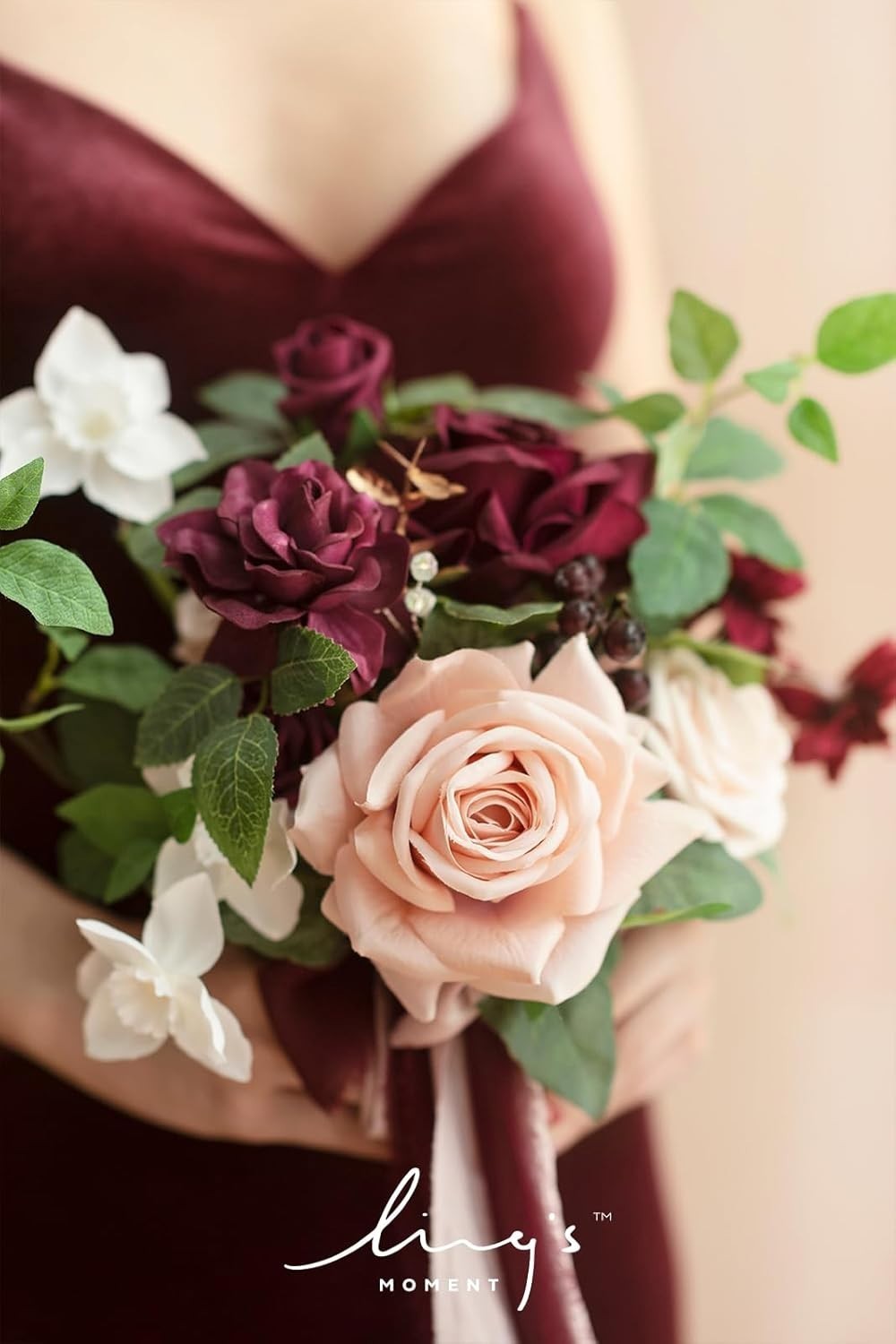 Elevate your wedding with our 7-inch Marsala Red Bridesmaid Bouquet, crafted from high-quality silk and foam for a sophisticated look. Featuring a beautiful mix of burgundy, blush, white roses, accented with pink lady orchids and greenery, this elegant arrangement adds a dreamy, sweet atmosphere to your celebration. Designed to be lightweight and easy to carry, our pre-made bouquets are perfect for tossing, decoration, and photography. Whether indoor or outdoor, they?re durable and versatile, suitable for various occasions beyond weddings, including bridal showers, festivals, and home decor. With of expertise in wedding decor, Ling's Moment offers a variety of trendy colors and themes to make your special day truly memorable.