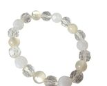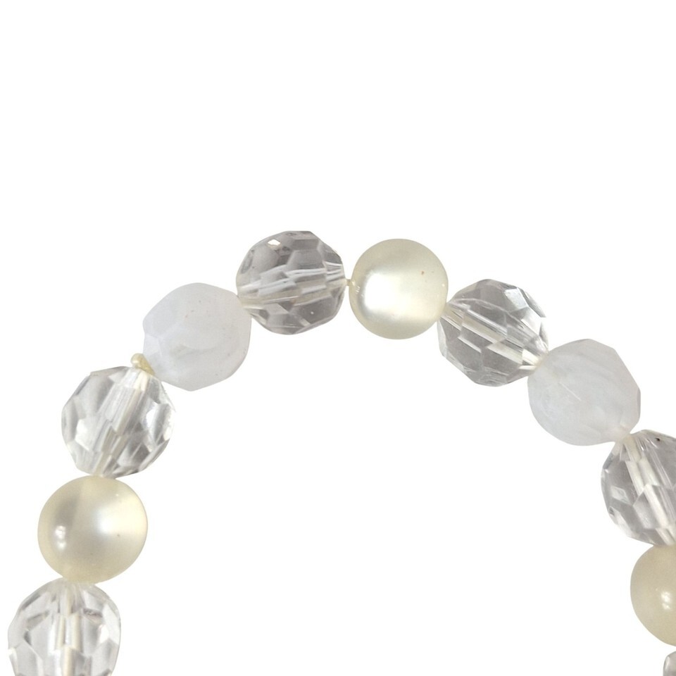 - Elegant Beaded Stretch Bracelet Faceted Crystal Pearl Matte White Jewelry