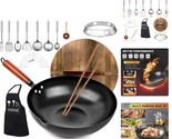 - Elegant Carbon Steel Wok Set with Wooden Lid - 14 Cooking Essentials Included