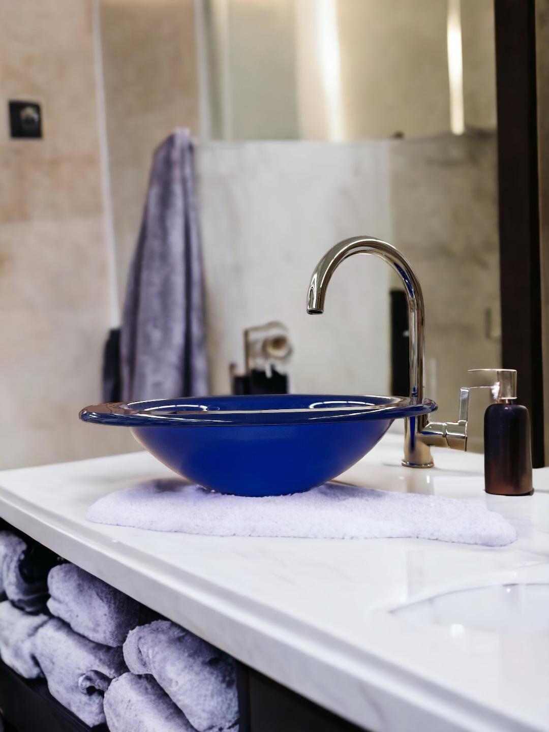 Glass Vessel Sink Beautiful design for unique color and shine.