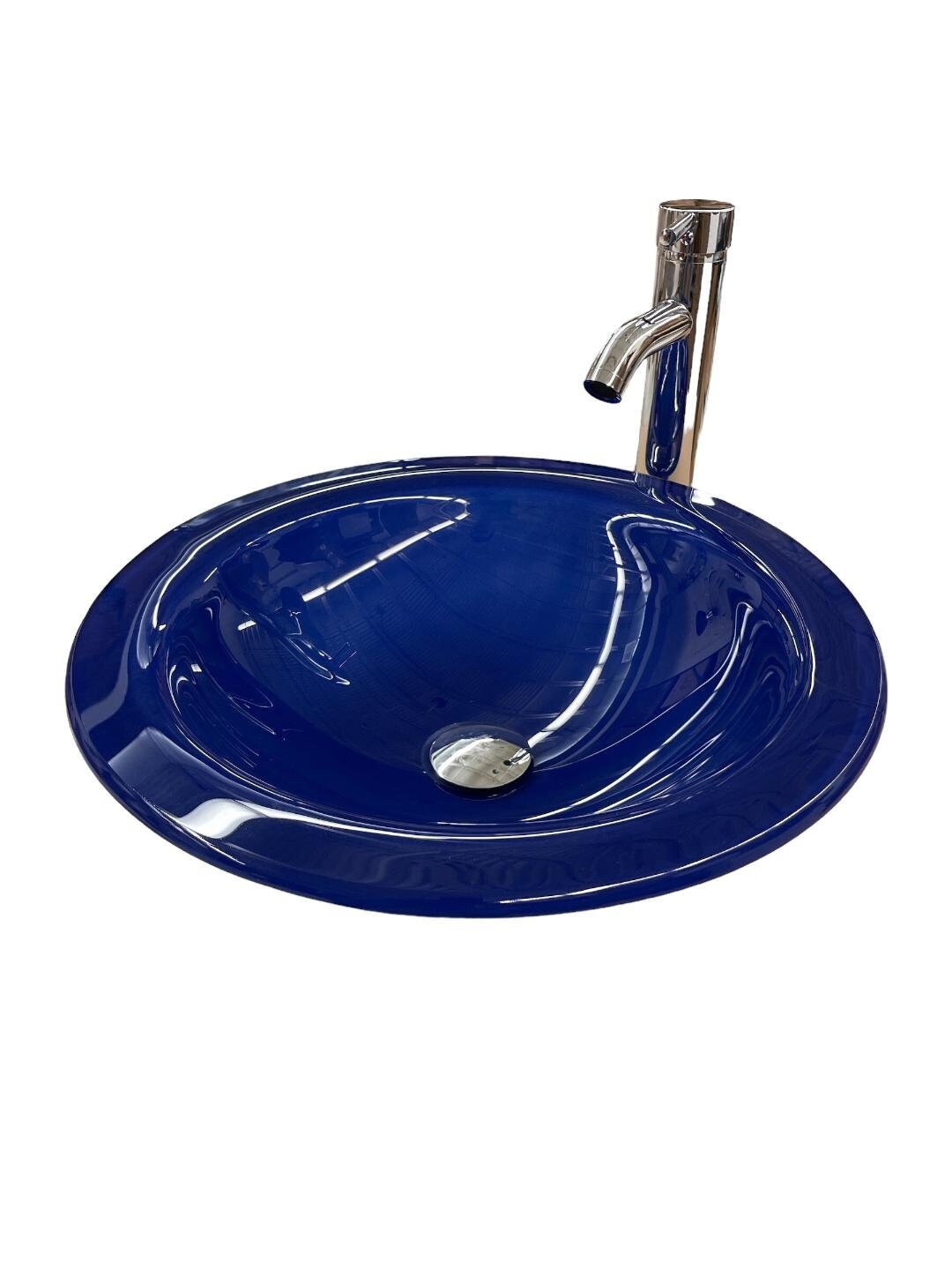 Blue Finish Tempered Glass Design Vessel Sink Pop up and ring