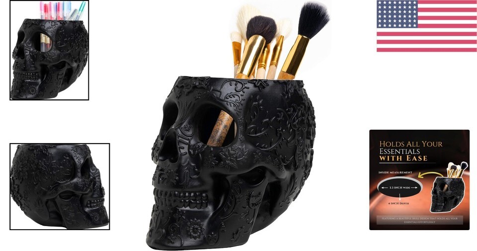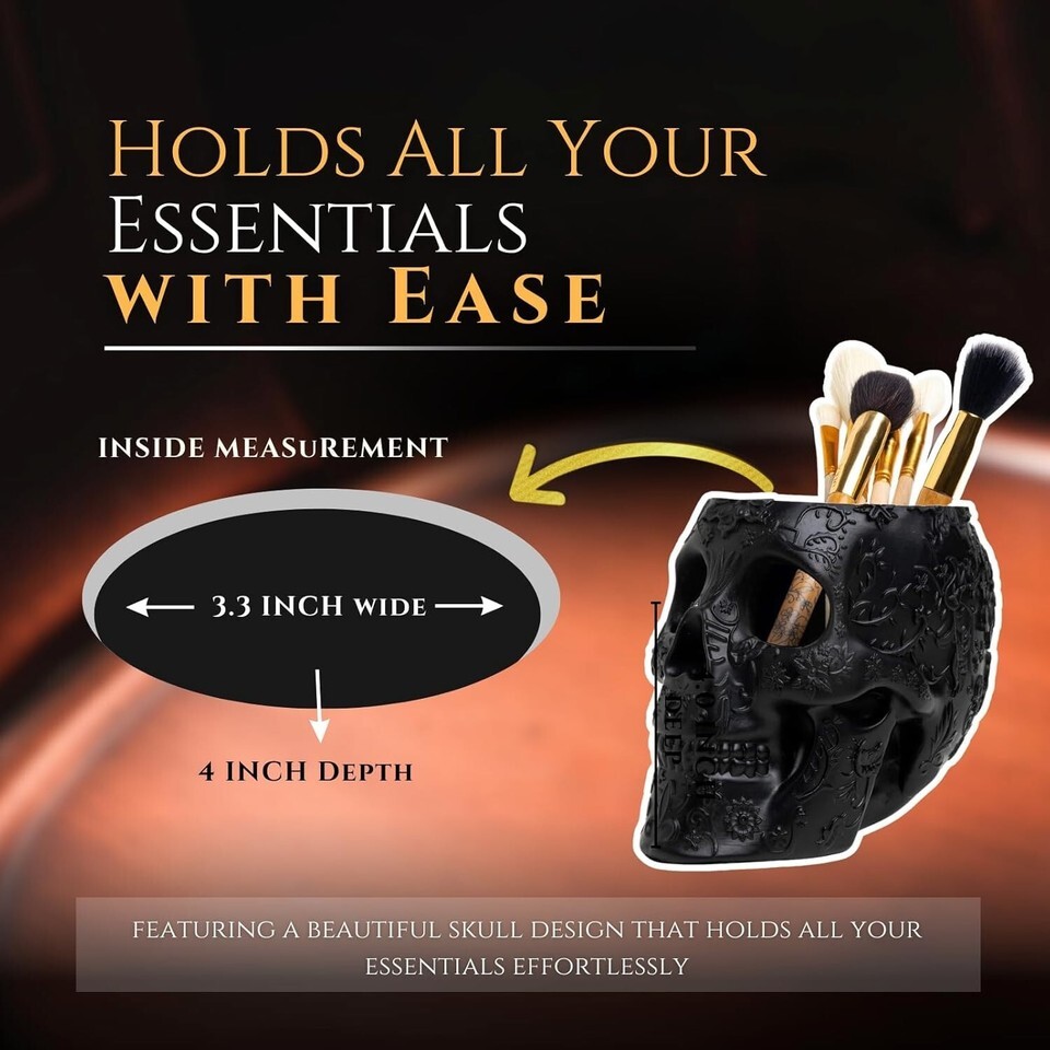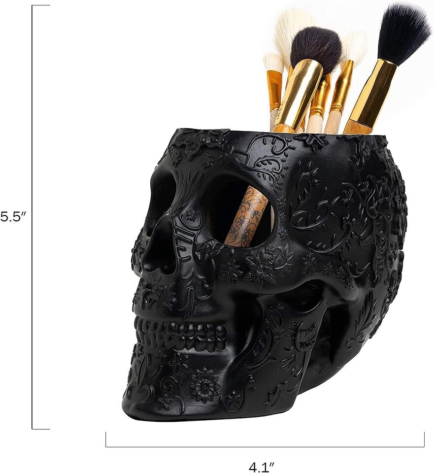 - Elegant Extra Large Skull Organizer - Gothic Resin Holder for Pens & Brushes