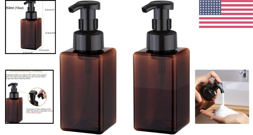 - Elegant Foaming Soap Dispenser - 450ml Amber Refillable Pump Bottle Set of 2