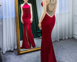 This sophisticated mermaid-style evening dress features a halter neckline and a classic court train, crafted from high-quality jersey fabric with spandex for a comfortable fit. Designed without sleeves and adorned with delicate beading, it offers a natural waistline and a floor-length silhouette that exudes vintage elegance. Complete with a built-in bra, this non-woven dress is perfect for weddings and formal parties, combining timeless style with modern comfort. Made in Anhui, China, it suits all ages seeking refined sophistication.
