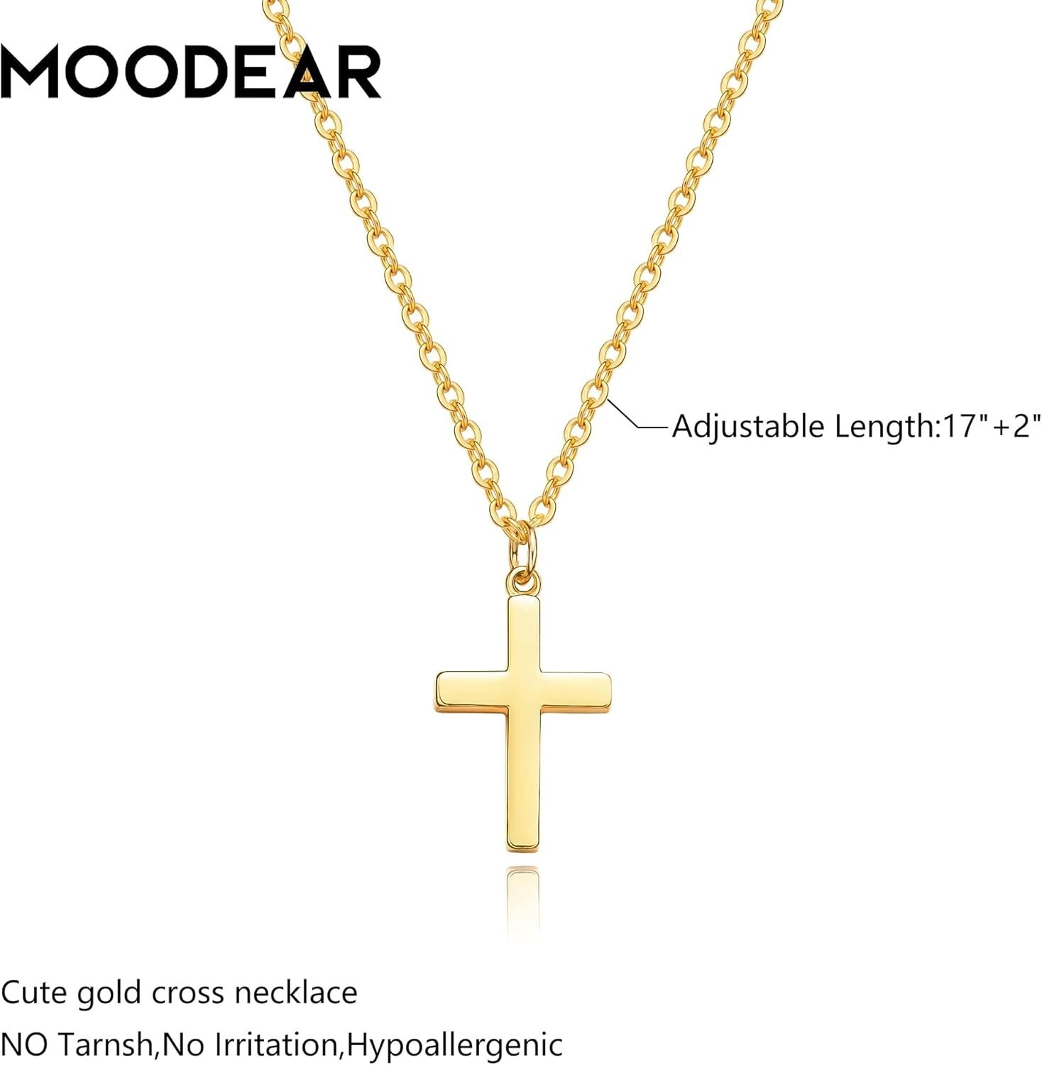 Elevate your style with our adjustable gold cross necklace, featuring a delicate 16.5-inch chain with a 2-inch extender and a sleek 30mm by 1.8mm pendant. Crafted from high-quality 14K vermeil gold, it's hypoallergenic and nickel-free for comfortable wear. The unique, elegant design makes it the perfect gift for women on birthdays, anniversaries, or special occasions, beautifully packaged in a protective gift box. For any questions, our customer service team is ready to assist within 24 hours.