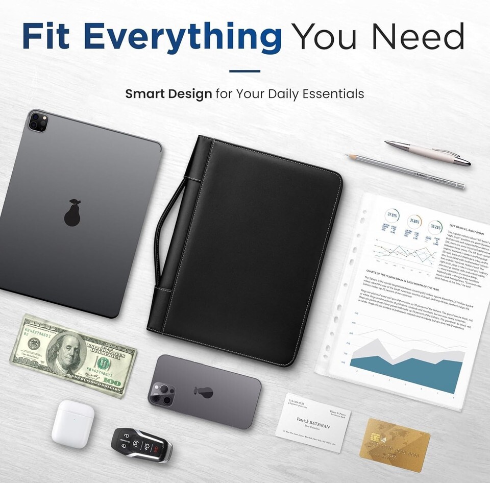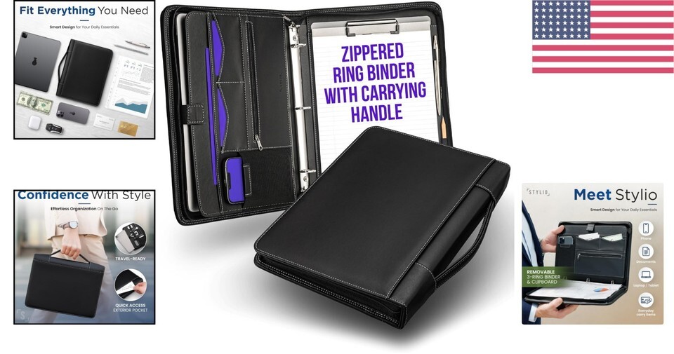 - Elegant Leather Zipper Portfolio & Removable 1" Binder – Ideal for Professionals