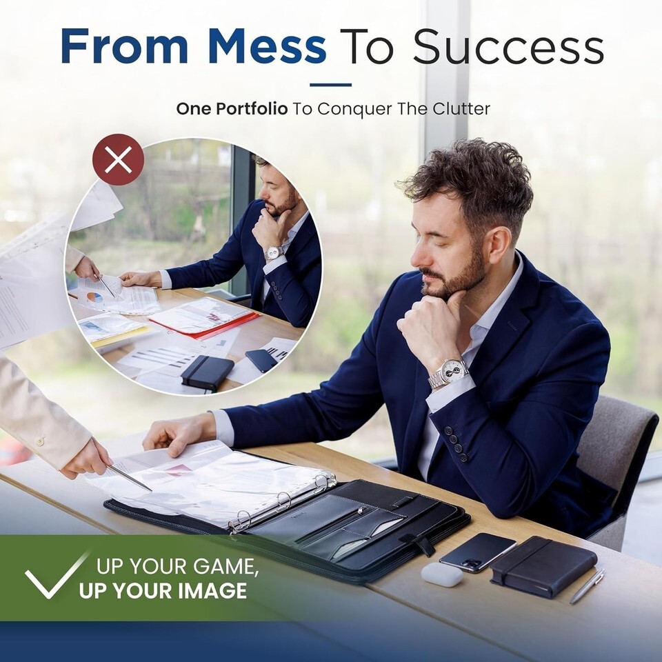 Transform your professional presence with our Elegant Leather Zipper Portfolio. Not only does it combine style and function, but it also elevates your productivity and organization. Ideal for every occasion from interviews to meetings, this portfolio guarantees you stay ahead in today?s fast-paced world. Secure yours today, and step into your next opportunity with confidence!