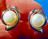 - Elegant Pearl Diamond European Earrings Unique Design Deco Syle Button Studs 14k