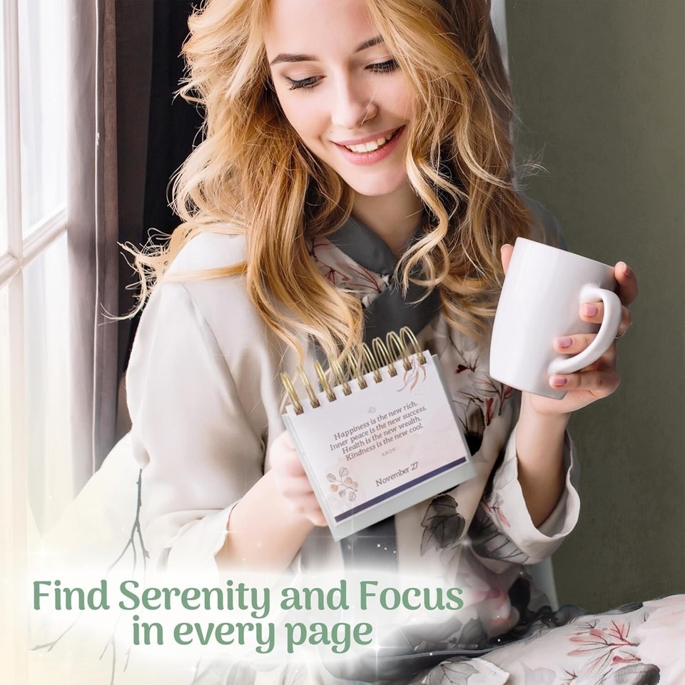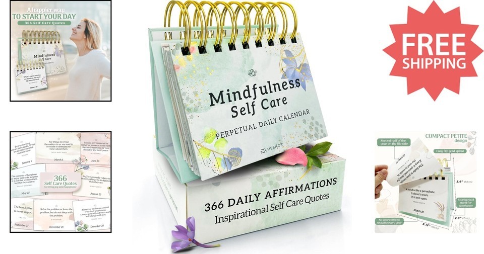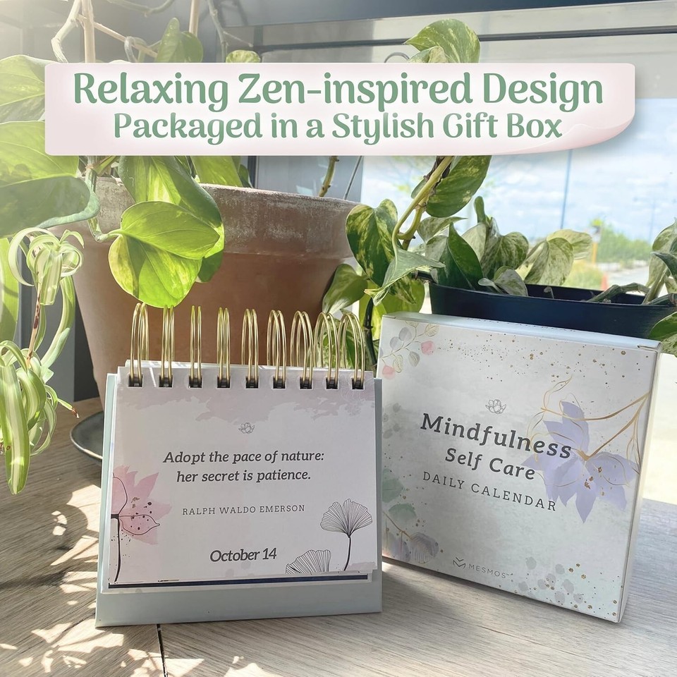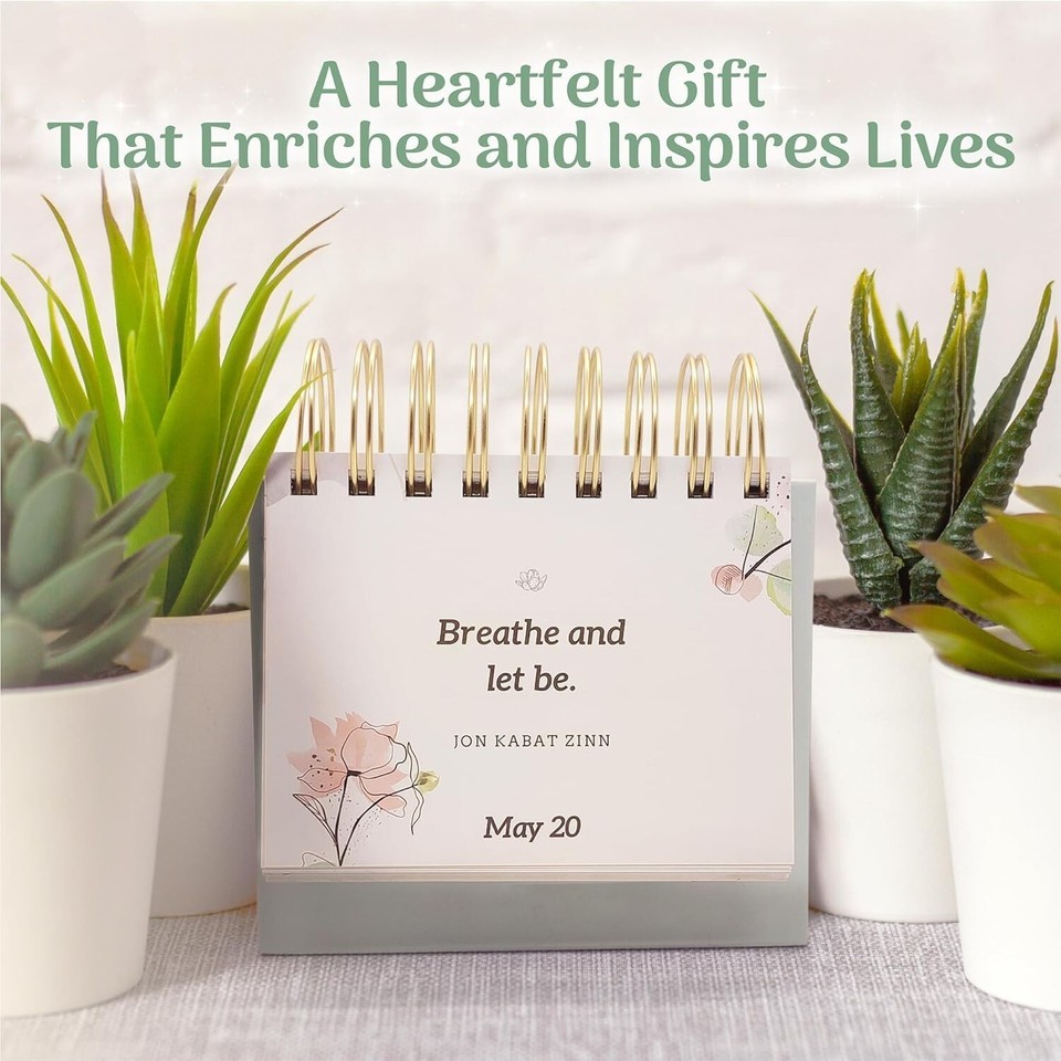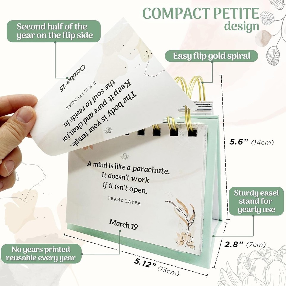 Start each day with calm and clarity using the MESMOS mindfulness flip calendar, designed specially for women. This beautifully crafted desk accessory features 366 mindful reminders, each backed with inspiring quotes to promote relaxation, focus, and well-being. The sturdy easel, elegant watercolor flower design, and thoughtful packaging make it an ideal gift for yourself or a coworker seeking positivity. By choosing this calendar, you're also supporting the Single Parent Project, as a portion of proceeds benefits this noble cause. Elevate your workspace and wellness routine with this daily mindfulness calendar.