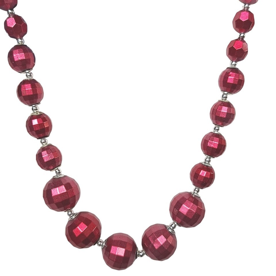 - Elegant Pink Sparkling Hexagonal Bead Necklace Handmade Statement Jewelry