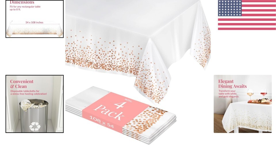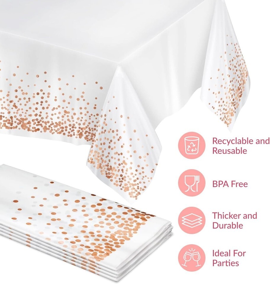 Choose elegance and convenience for your next celebration?order your 4-pack of Elegant Rose Gold Disposable Tablecloths today!