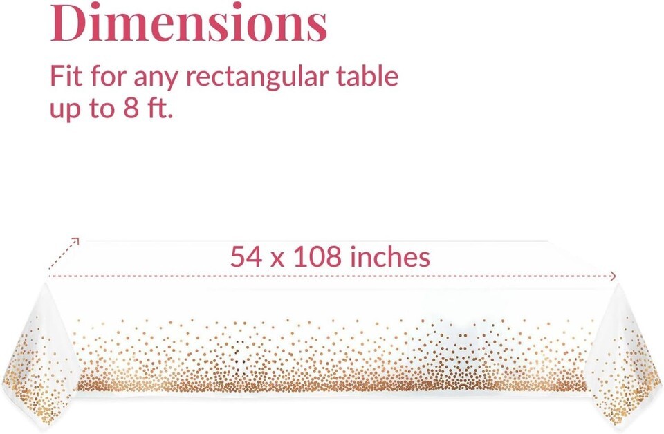 Dimensions: 54 x 108 inches, perfect for tables up to 8 feet long.