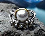 - Elegant Silver & Gold Pearl Ring | Multi-Layered Statement Jewelry | Unique Gift