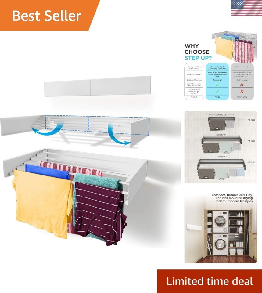 - Elegant White Wall Mount Laundry Rack - 40lbs Capacity & Easy Installation