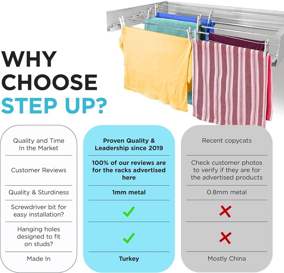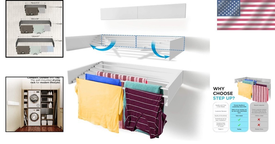 Transform your laundry experience with our wall mount rack that perfectly combines elegance with practicality. Unlike inferior versions, our patented design guarantees quality and stability, making drying clothes a stylish affair in any space, from cozy bathrooms to spacious patios.