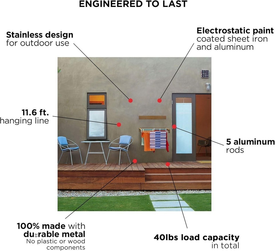 Large Drying Space: Equipped with 5 robust aluminum rods offering 11.6 feet of linear hanging space.