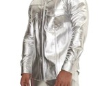 Elegante camicia da uomo argento fatta a mano in pelle di agnello vera morbid...