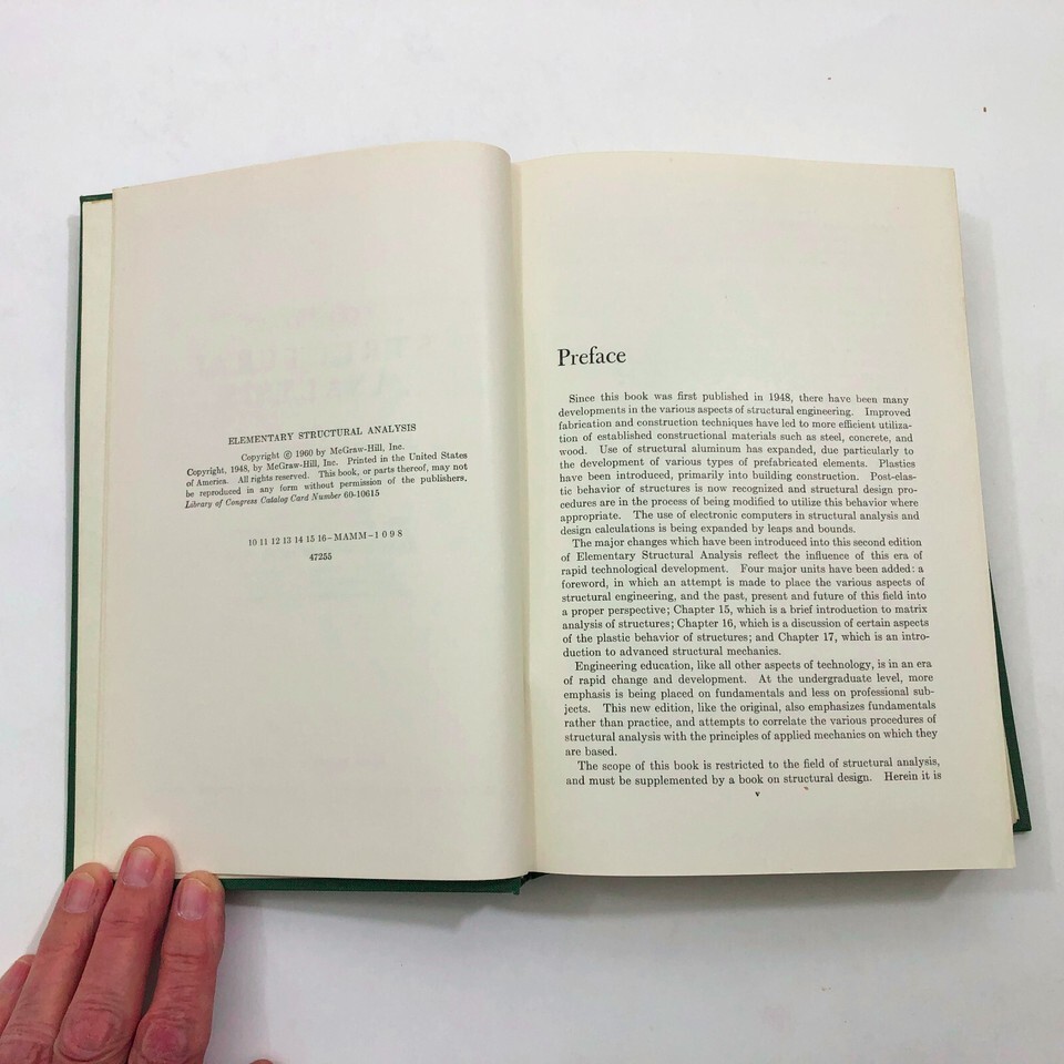 - Elementary Structural Analysis 1960 2nd Edition 10th Printing HB 651 pages