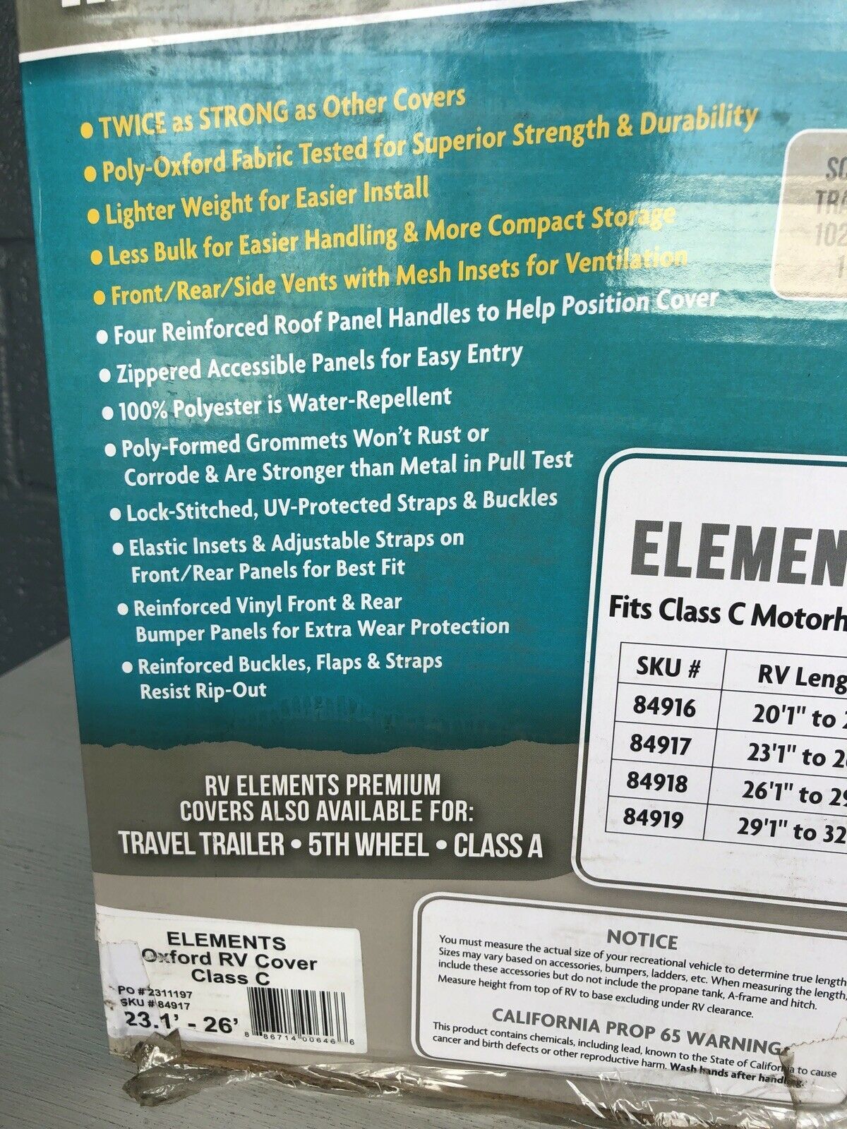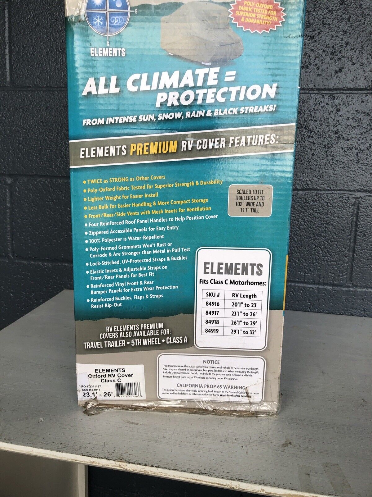 Elements Premium All-Climate Class C RV Cover 23.1?-26? #84917-RARE-SHIPS N 24H. Condition is New. Premium quality RV Covers are twice as strong as other fabrics to give your RV the best protection against UV rays, rain, snow and environmental hazards.