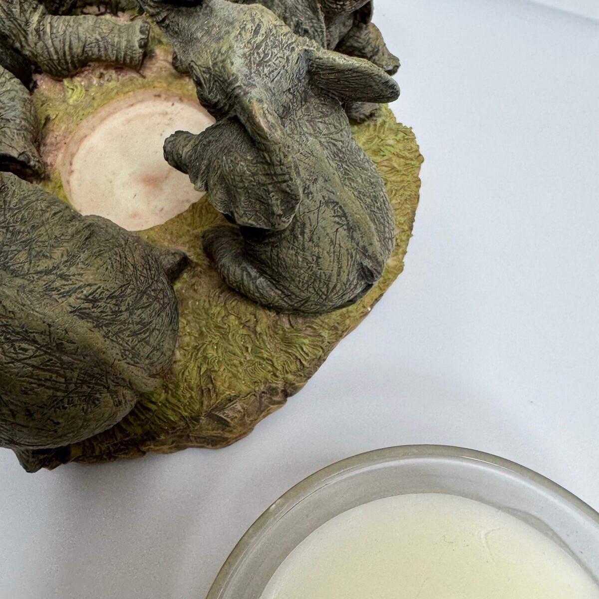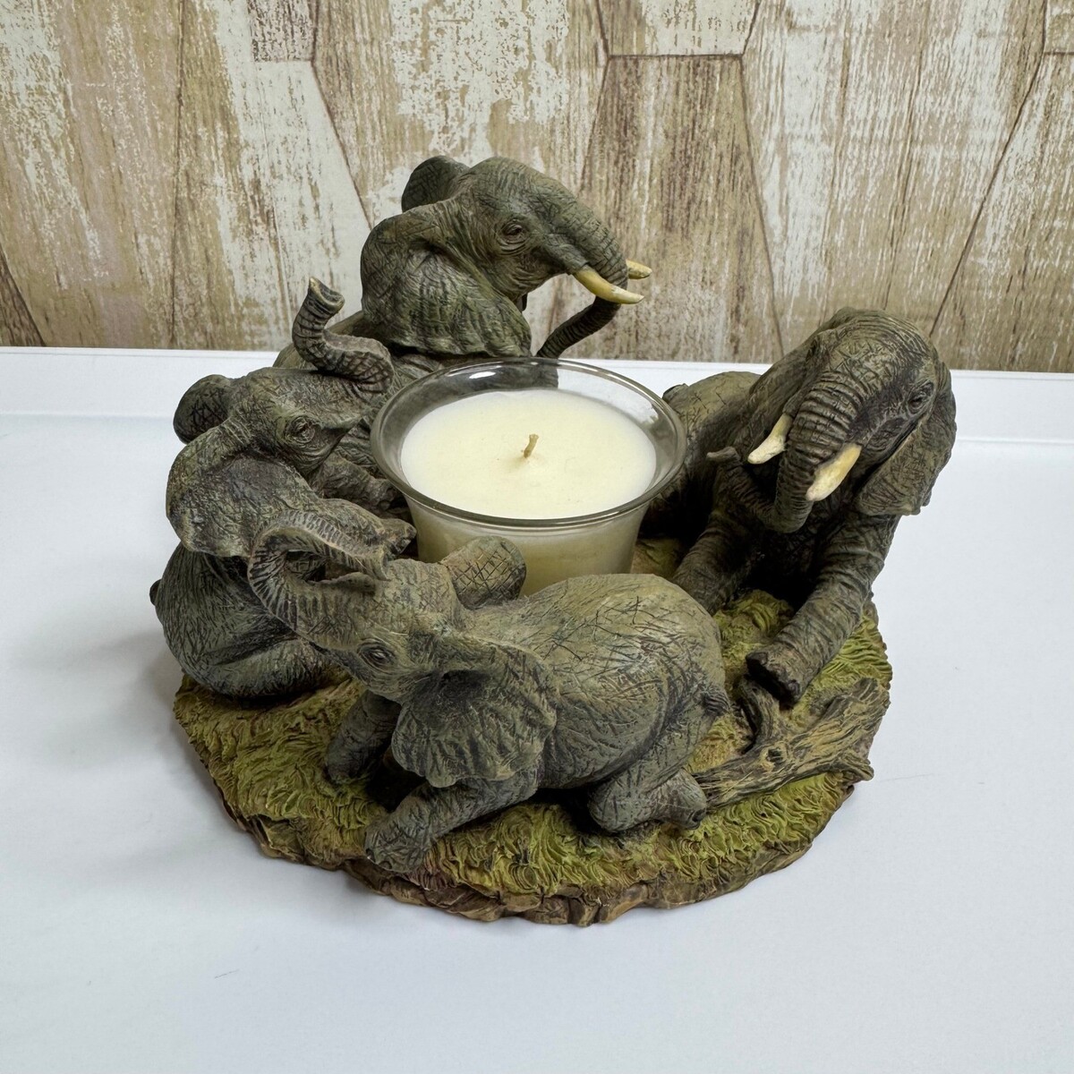 Keywords: elephant candle holder, votive candle holder, elephant figurine, African wildlife decor, table centerpiece, animal sculpture, resin elephant, home decor, gift for elephant lovers, nursery decor, safari theme, desk accessory, mantel decor
