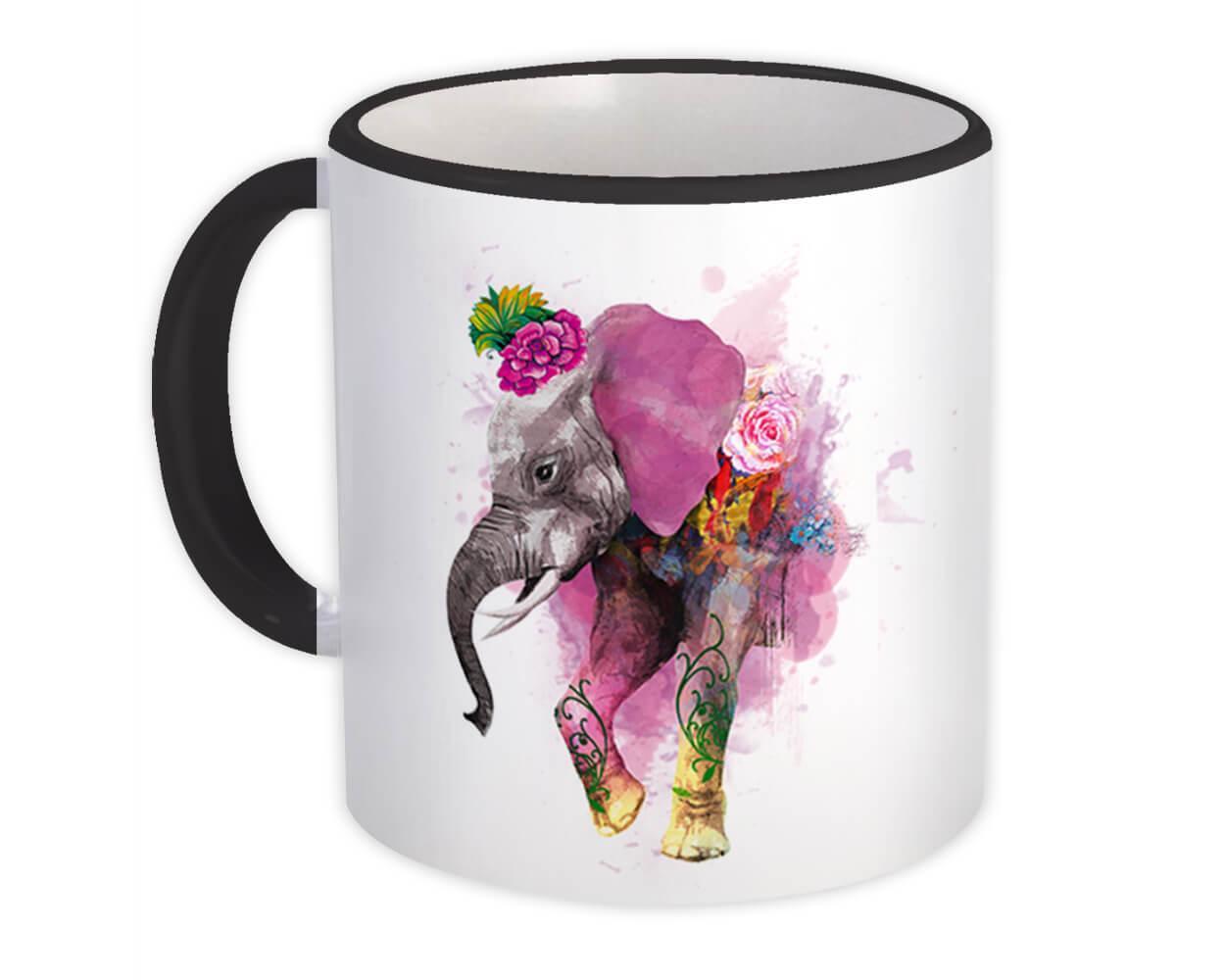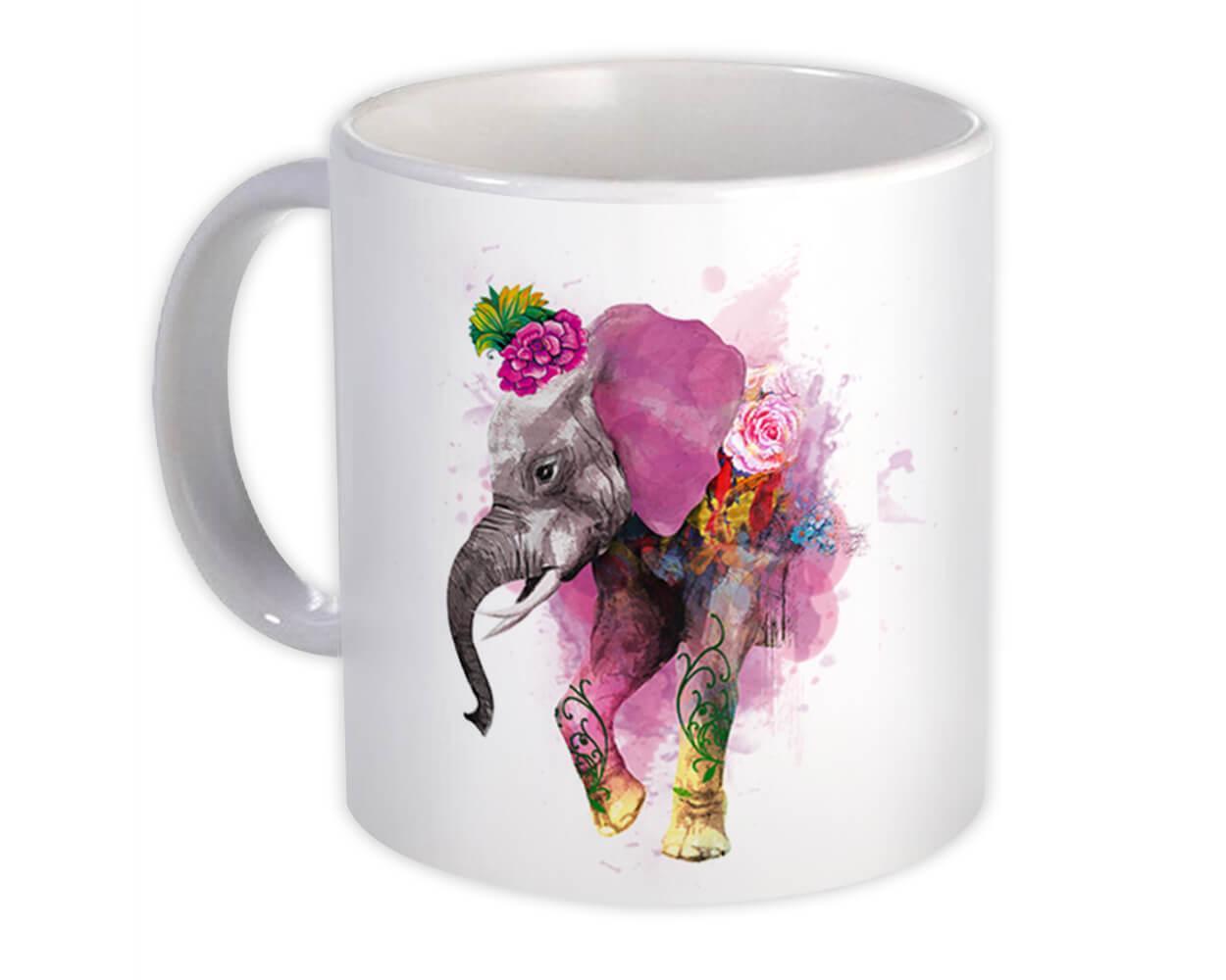 Elephant Painting Flowers : Gift Mug Safari Animal Wild Nature Africa Watercolor