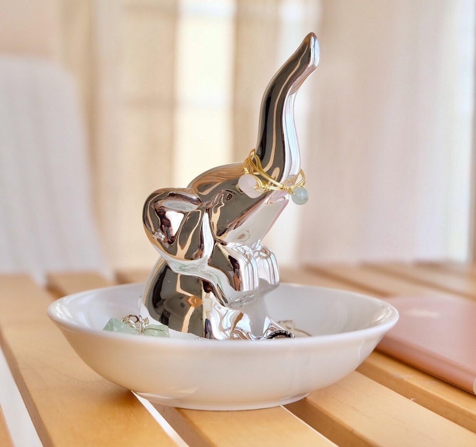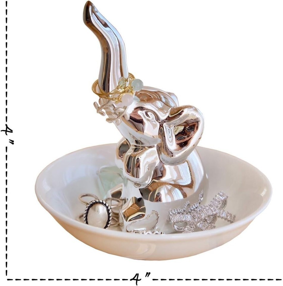 - Elephant Ring Holder Women Birthday Gift Jewelry Dish 3.9"D x 3.94"W x 3.9"H