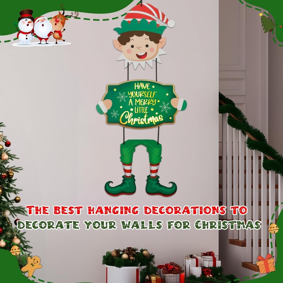 - Elf Boys Hanging Sign with Lights Wooden Christmas Decor Indoor Outdoor