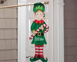 This happy little elf is ready and willing to help welcome visitors to your yard or garden. The Elf-Shaped Garden Flag is made from durable weather-resistant material to withstand tough outdoor conditions. Just slip a flag pole into the pole opening (pole sold separately). Image is viewable on both sides. Made from polyester. Spot clean. 32" long x 14 1/2" wide.