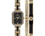 Elgin Women's Black Gold Tone Crystal Accented Stainless Steel Watch & Bracelet