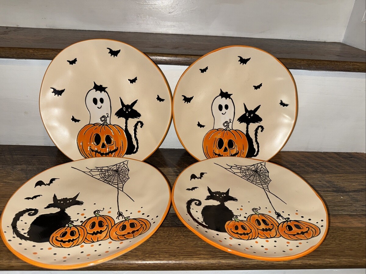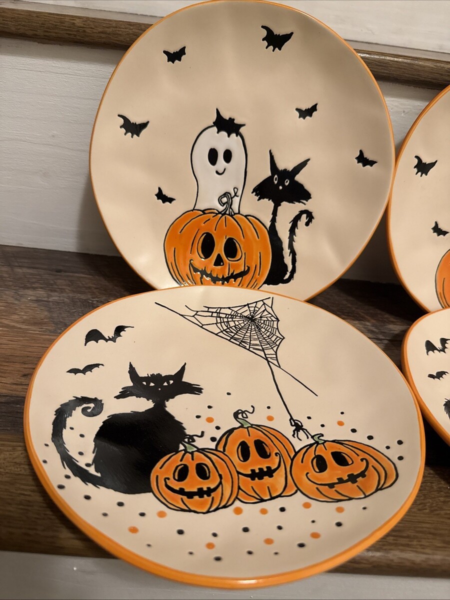 - Eli Ana Happy Halloween Bat Black Cat Pumpkin Spiderweb Salad Plates S/4 ~ New~