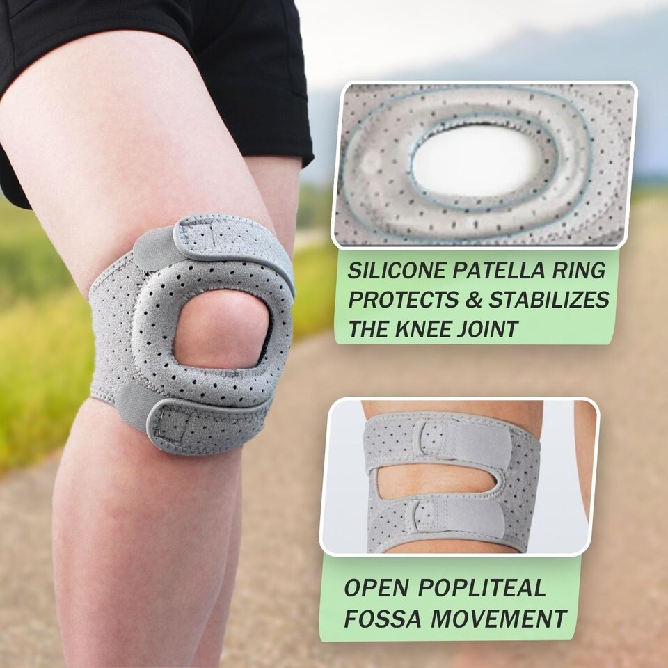 Open patella protection ring with breathable silicone pad provides targeted support and reduces knee pressure.