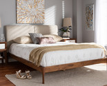 Eliya Beige Fabric Upholstered Walnut Finished Queen Size Platform Bed