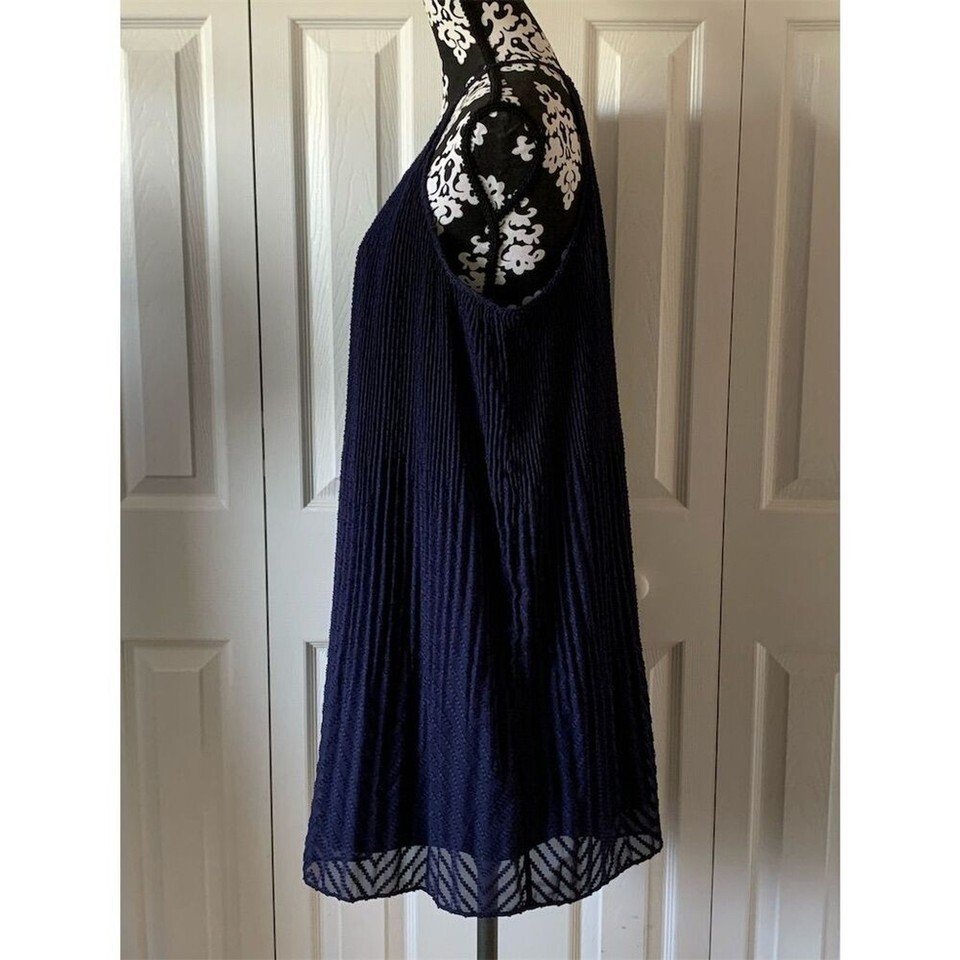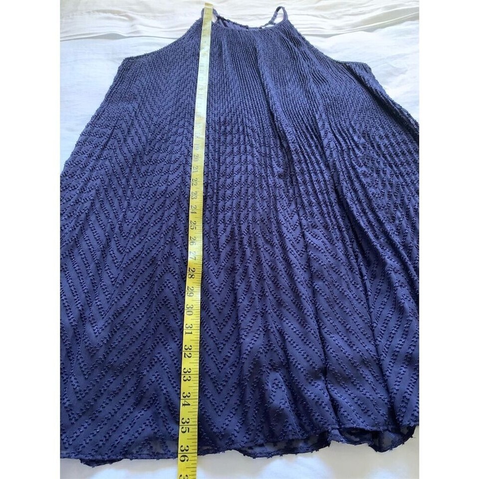 - Elle Navy Blue Pleated Lined Halter Textured Keyhole Dress Sleeveless