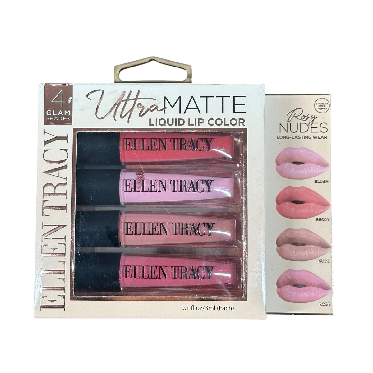 - Ellen Tracy 4-Piece Ultra Matte Liquid Lip Color Rosy Nudes SEALED BOX Pinks