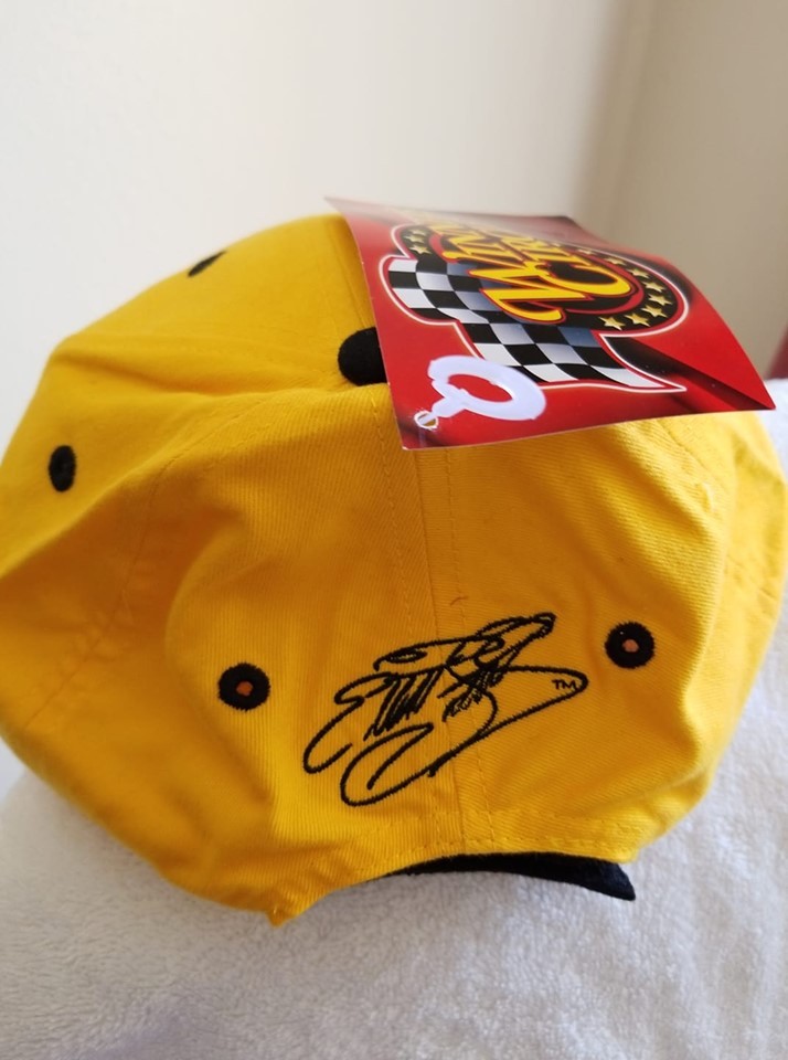 Elliott Sadler #38 M M's new Winner's Circle yellow ball cap.