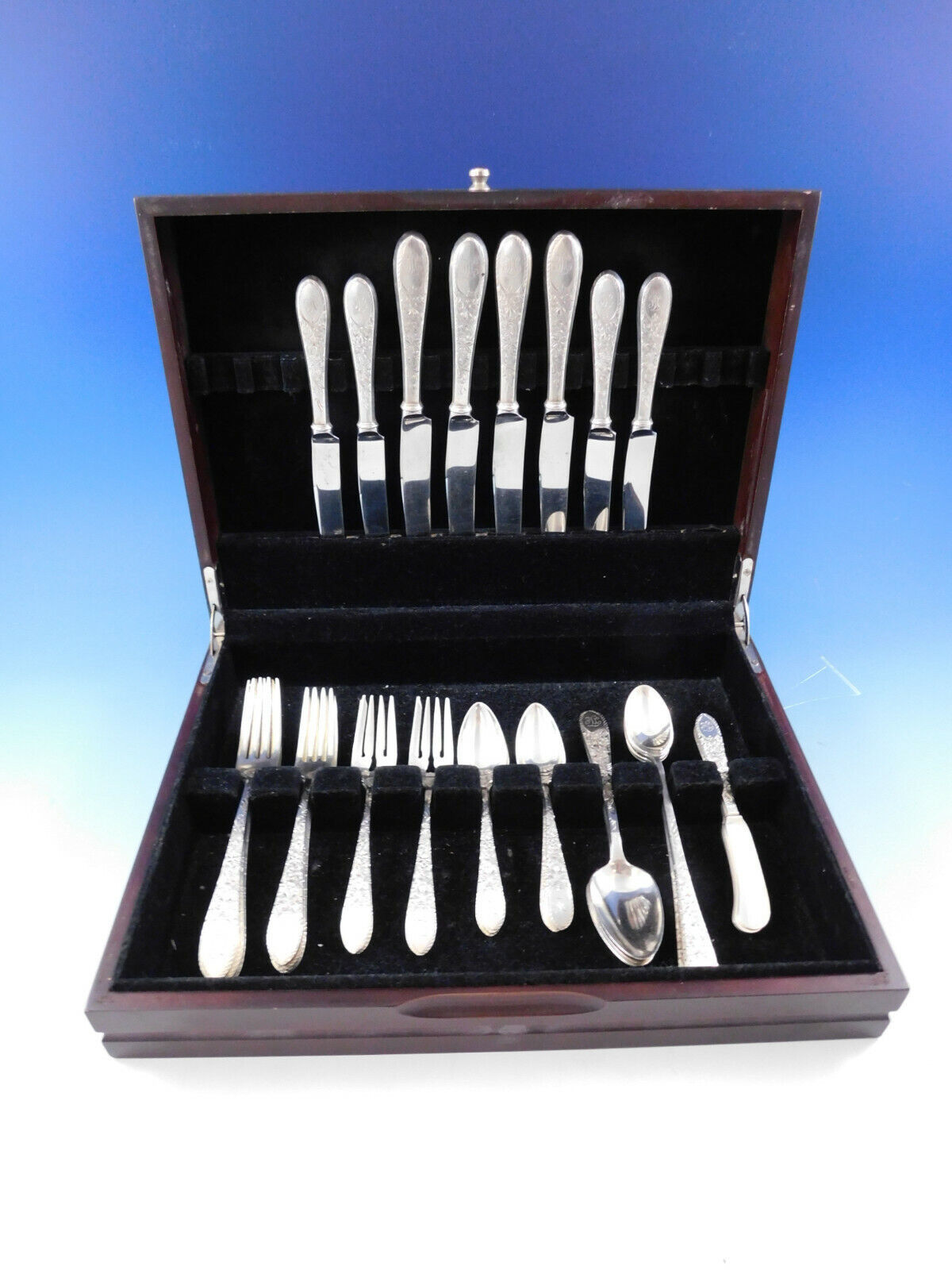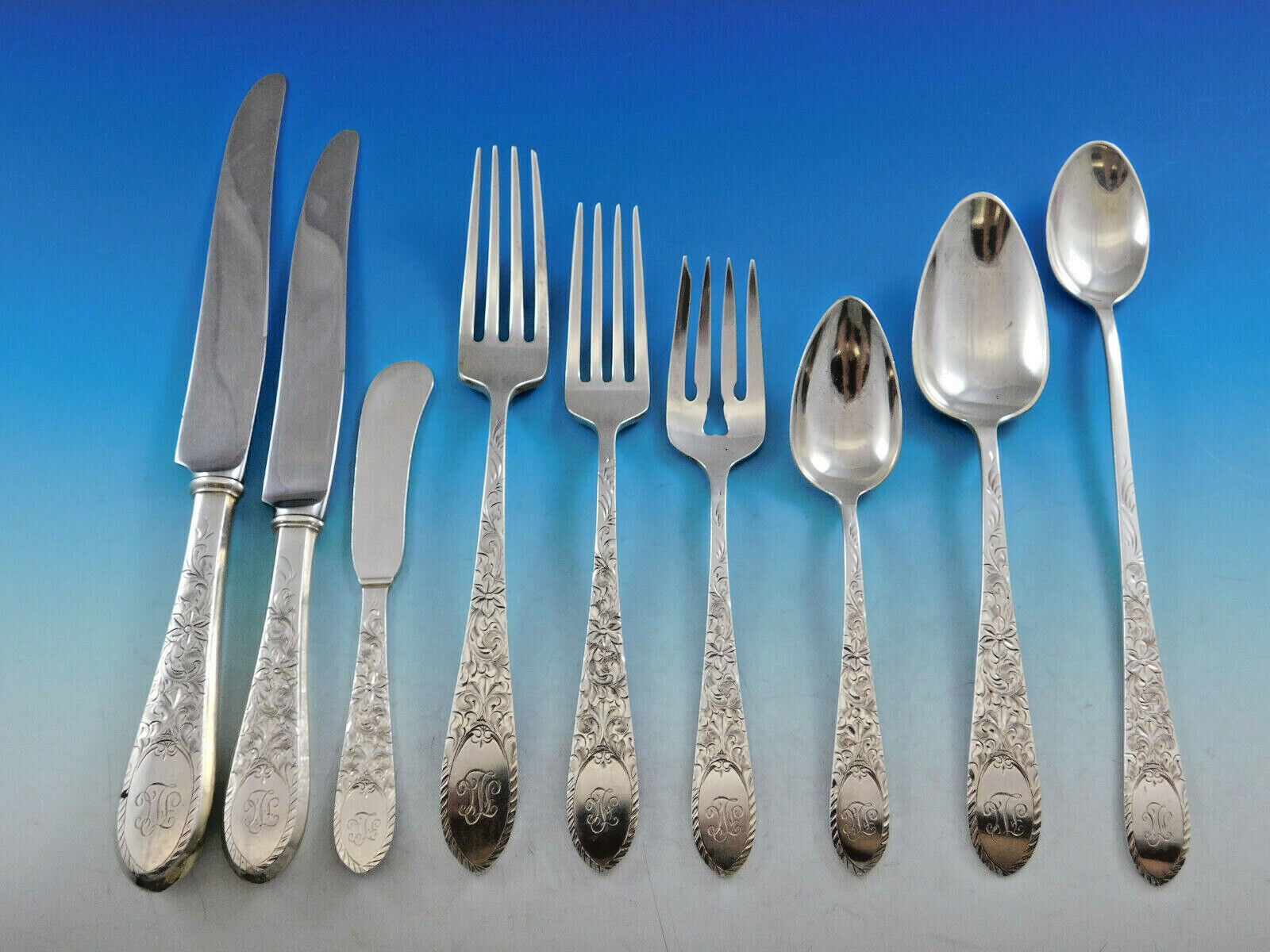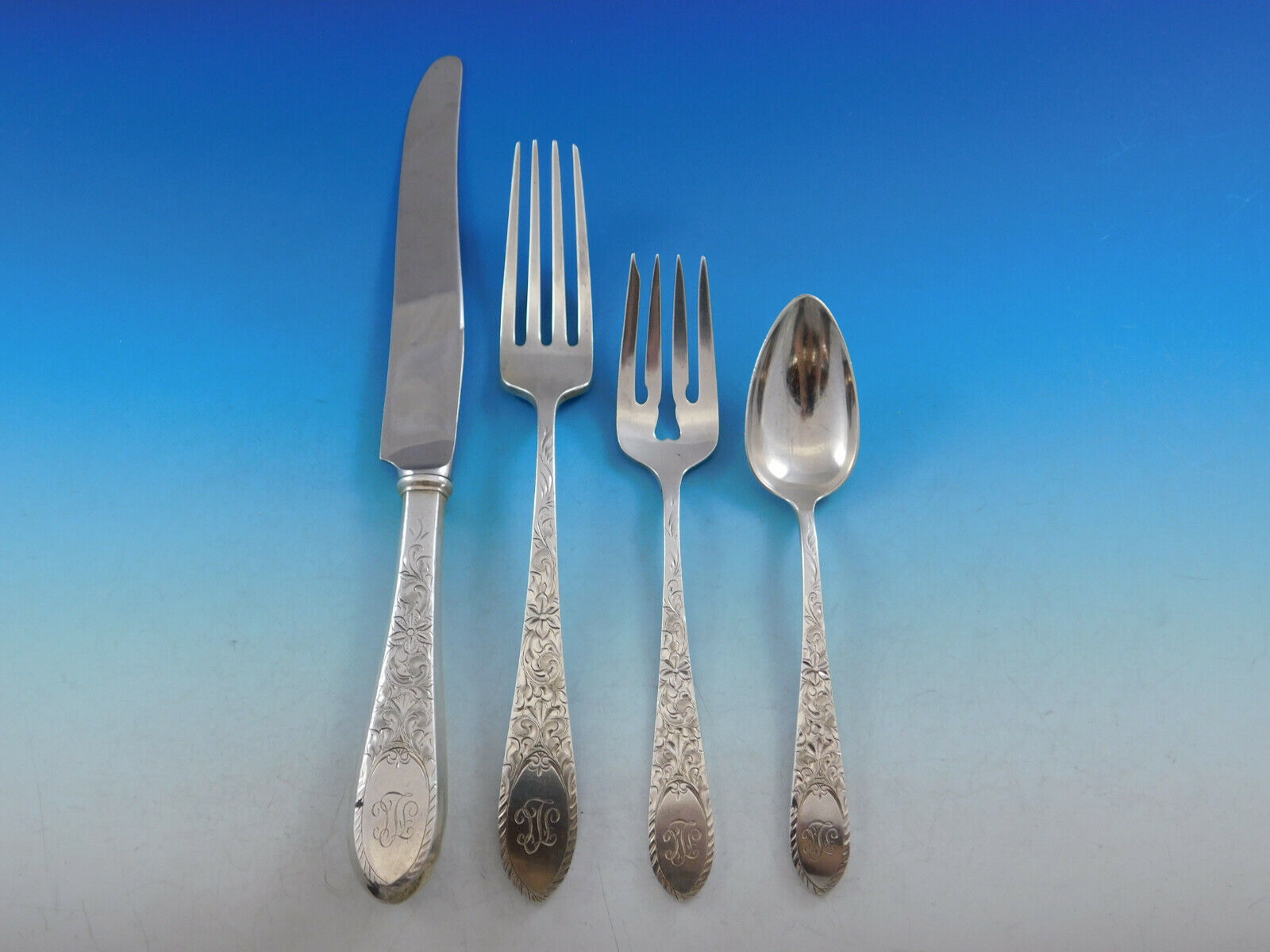 Scarce Elmwood by Gorham sterling silver Flatware set introduced in the year 1894, with engraved design - 36 pieces. This set includes: