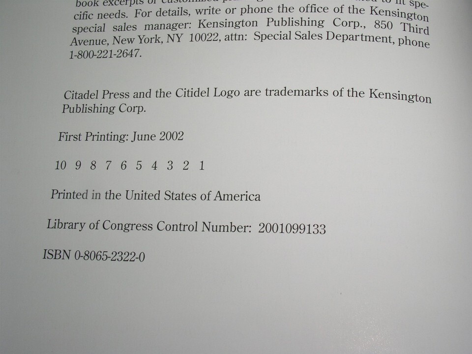 This is a softbound book entitled, "The Elton John Scrapbook" by Mary Anne Cassata. Inside cover states First Pressing, June 2002 Citadel Press. Uncertain what the row of numbers signifies. A terrific item for the fan or collector.
