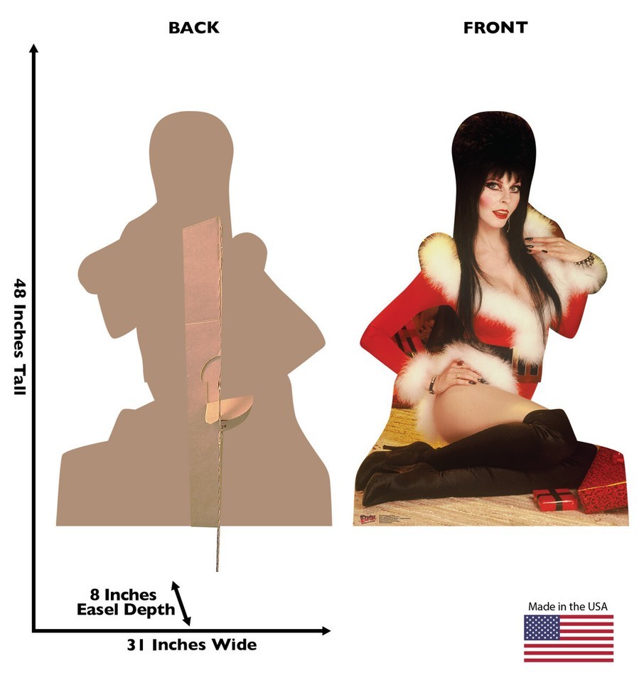 This is a life size cardboard cutout of Elvira Christmas Sitting. Easy