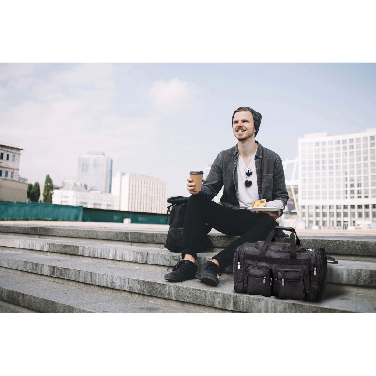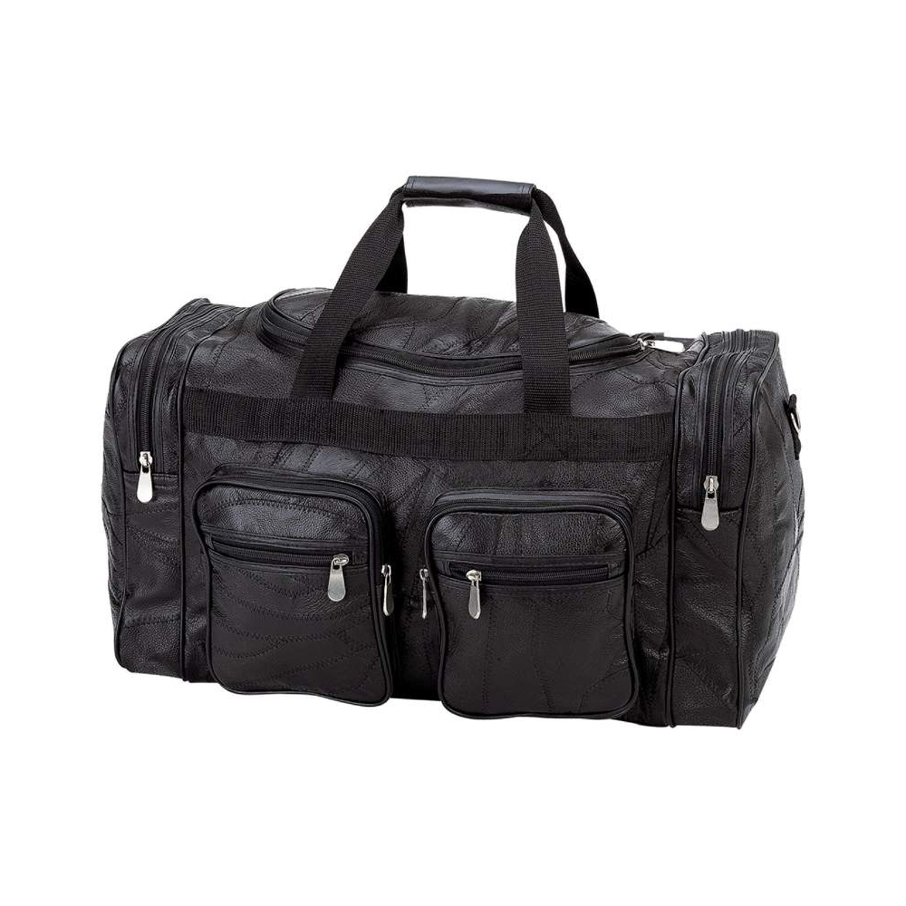 Carry on. Carry all. Carry everywhere! Your Duffel Bag should be as versatile as you are The Embassy Italian Stone Design Genuine Leather 21 Duffel Bag features a detachable carrying strap and brushed metal heavy-duty zipper pulls The bag bottom is reinforced to safely carry all of your items, as well as offering multiple pockets for storage The polypropylene feet on the bottom of the bag stand ready to help you in a days work, travel, or play Measures 21 by 11 x 10-1/2.