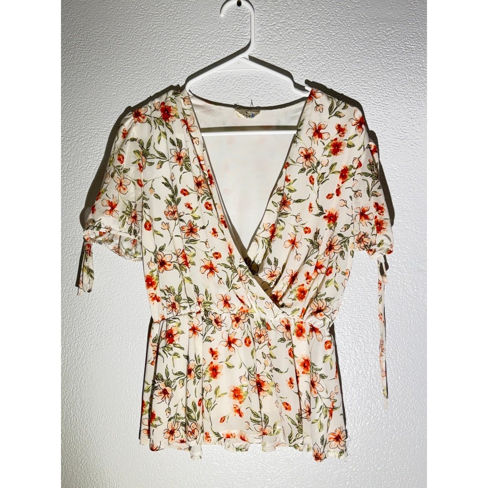 - Ember White Floral Sheer Blouse with Lining – Women’s Medium