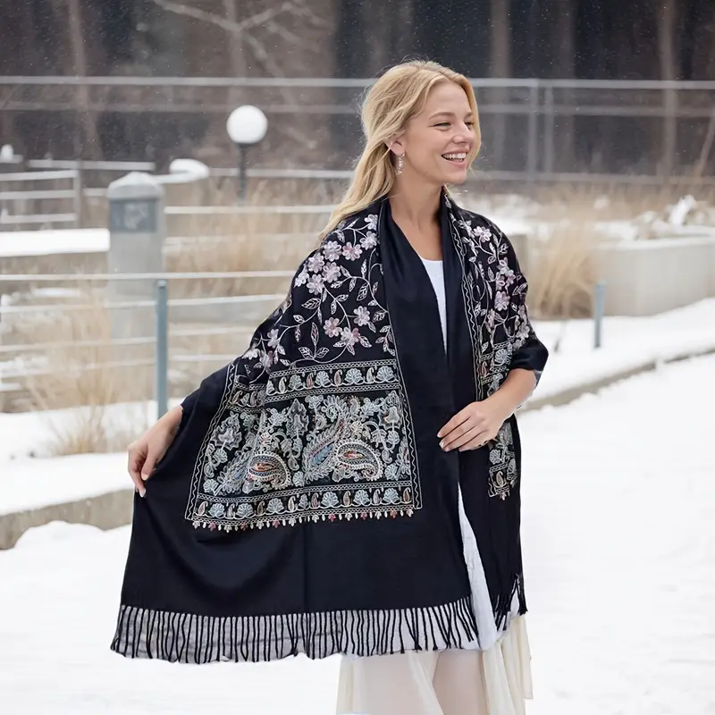 - Embroidered Cashmere shawl wrap for women - Gift for her