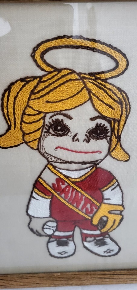 - Embroidered Framed Girl Halo holding a Baseball Saint Paul Saints Baseball?