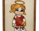 Embroidered Framed Girl Halo holding a Baseball. This maybe an embroidery piece for a fan of Saint Paul Saints Baseball?