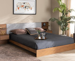 - Emele Light Gray Fabric Walnut Brown Queen Storage Bed w/Built-In Nightstands