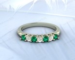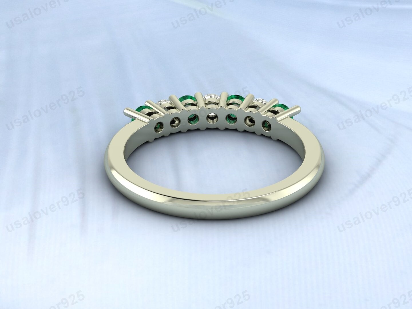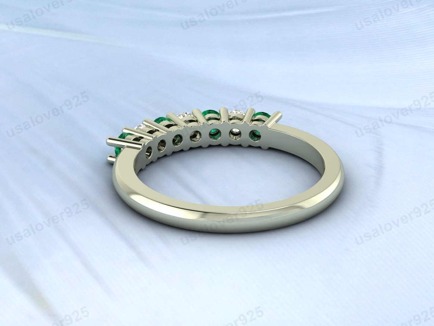 - Emerald Gemstone Women Half Band Ring, 925 Sterling Silver Handmade Jewelry