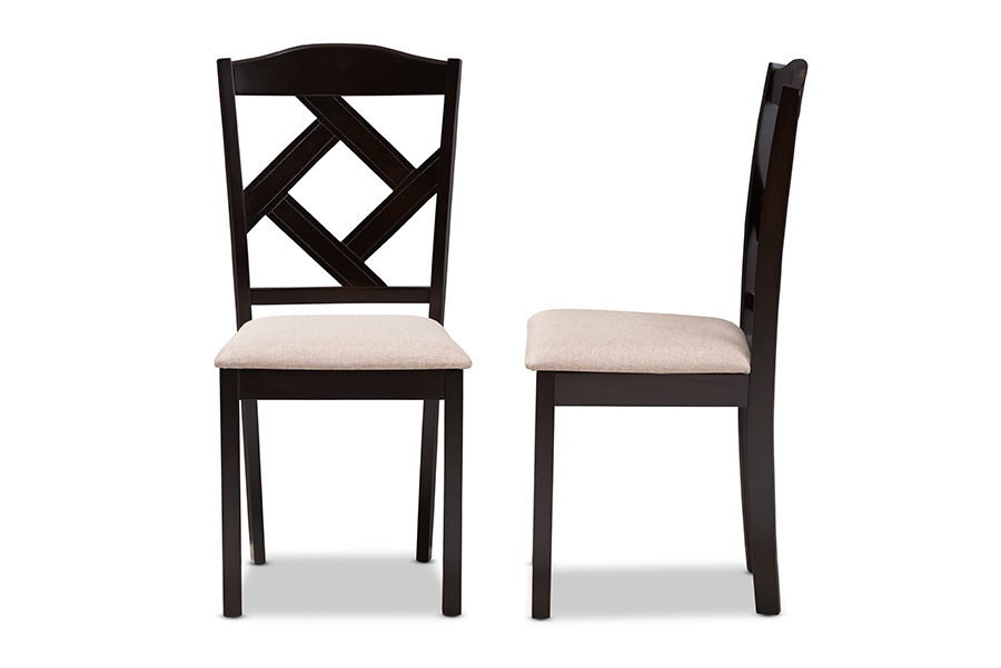 Emiko Beige Fabric Upholstered and Dark Brown Finished Dining Chair (Set of 2)
