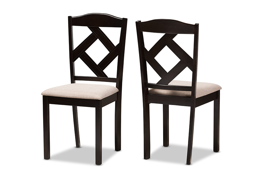 - Emiko Beige Fabric Upholstered and Dark Brown Finished Dining Chair (Set of 2)